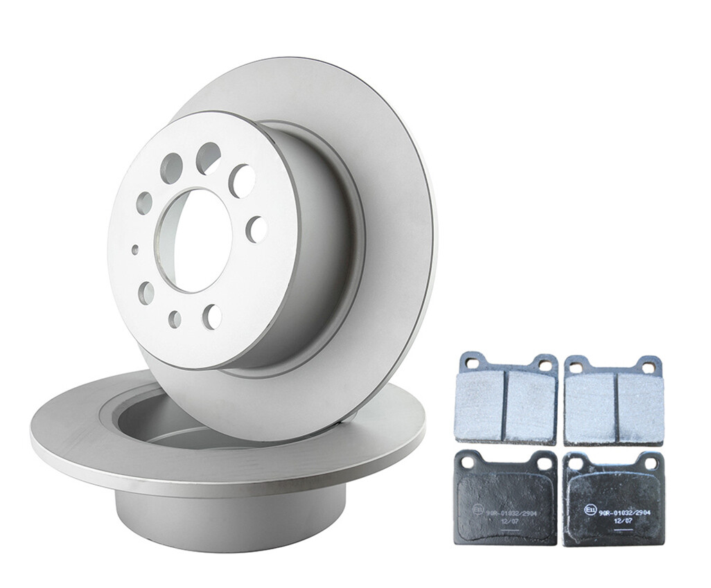Bromssats med coatade bromsskivor och bromsbelägg bak till Volvo 240, 260, 740, 760, 780, 940, 960, passar ej bilar med multilink. Bromsskivorna är 281mm i diameter och geomet-coatade.